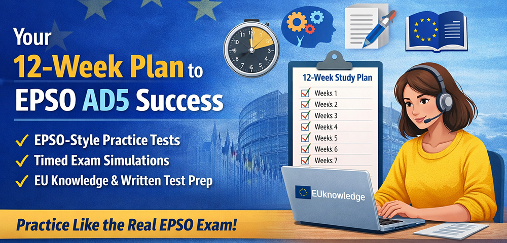 March 15, 2026Preparing for the EPSO AD5 Administrators competition is easier when you focus on essentials: what the competition requires, how the tests work and how to build a realistic study plan. The 2026 AD5 “Graduates” competition offers 1 490 places on the reserve list, making it one of the biggest entry points into a permanent EU career. You can apply with any Bachelor’s degree, regardless of work experience.